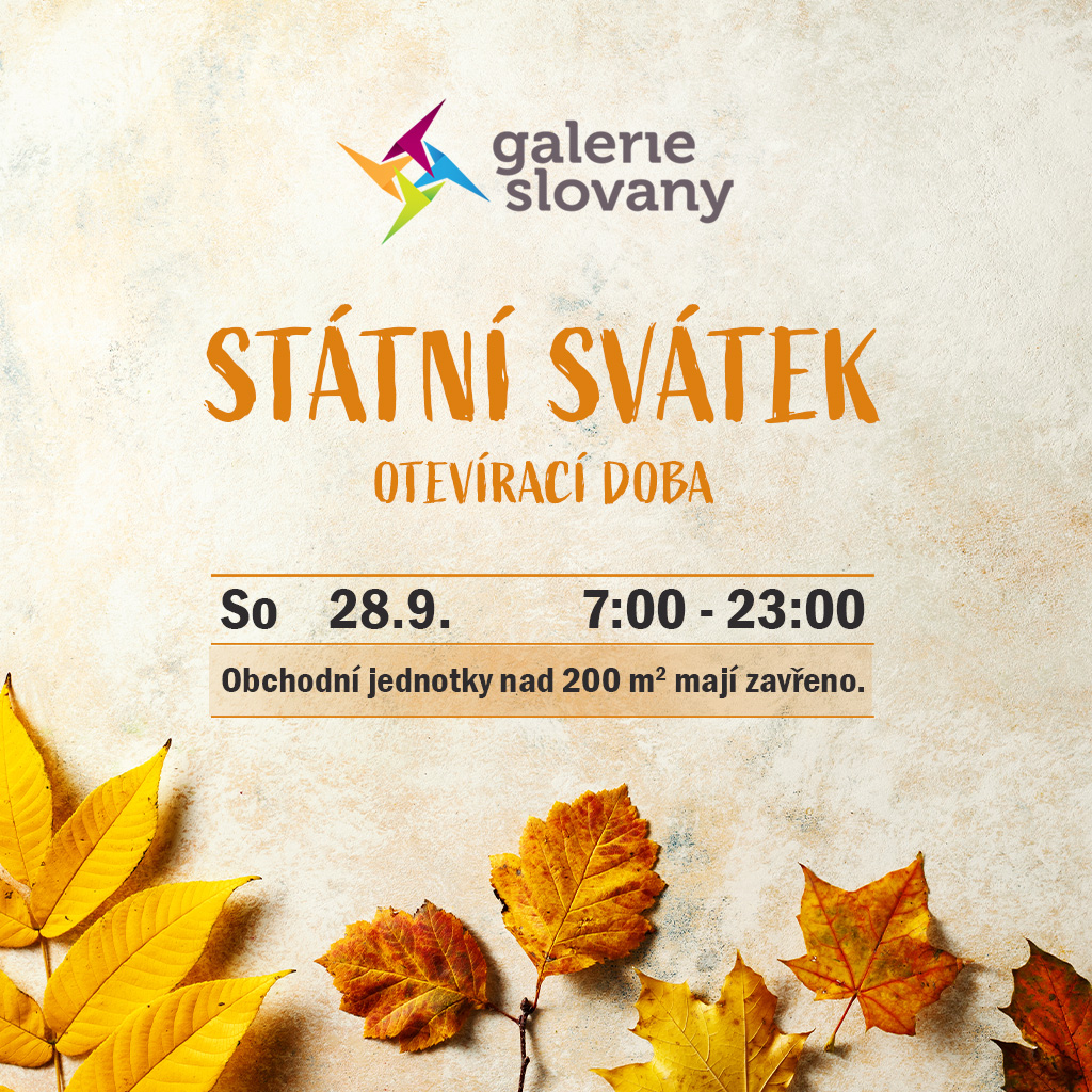 V sobotu 28. 9. 2024 pro vás máme otevřeno od 7:00 - 23:00. Obchodní jednotky nad 200 metrů čtverečních mají zavřeno.